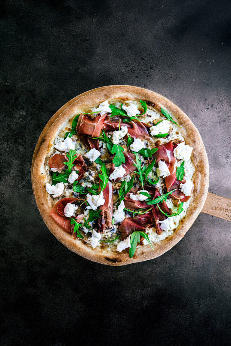 Un mariage subtil d’ingrédients raffinés : une base onctueuse de crème fraîche et Gorgonzola, de la bresaola*, de la Burrata crémeuse, de la roquette fraîche, du Provolone, des tomates semi-séchées et une touche de confiture de cerises. Une combinaison délicate qui sublime chaque bouchée pour une expérience gustative divine.
