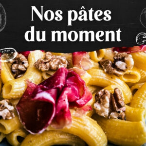 Pâtes fraîches maison aux oeufs,aubergines cuisinées, sauce tomate, Mozzarella fior di latte, pastrami*, Parmigiano Reggiano.